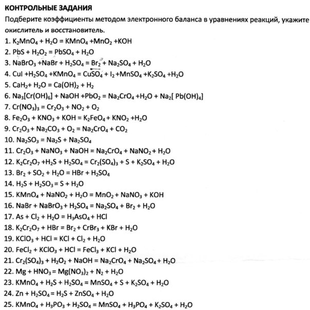 Подберите коэффициенты методом электронного баланса в уравнениях реакции , укажите окислитель и восстановитель. БОЛЬШАЯ ПРОСЬБА НАПИСАТЬ ( С 9 ПО 25). БУДУ БЛАГОДАРЕН(ЖЕЛАТЕЛЬНО НЕМНОГО ПОДРОБНЕЕ)
