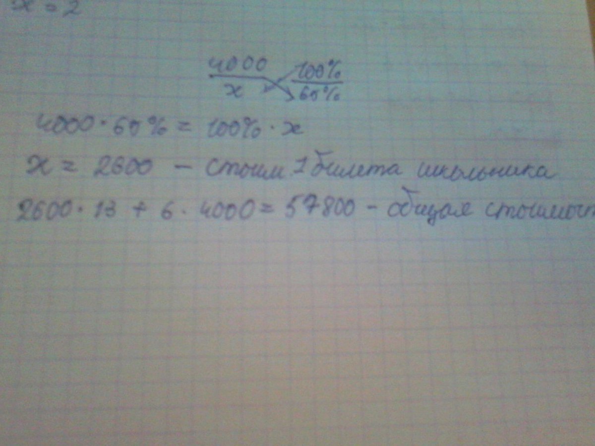 Авиабилет для взрослого стоит 4000руб,стоимость билета для школьника составляет 65% от стоимости билета для взрослого.Группа состоит из 13 школьников и 6 взрослых.Сколько рублей стоят билеты на всю группу?