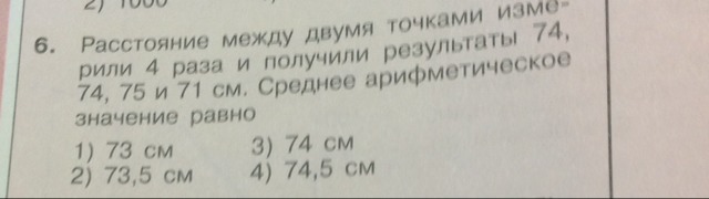 все измерения сложить и поделить на 4(кол-во чисел). Ответ 73,5 см)