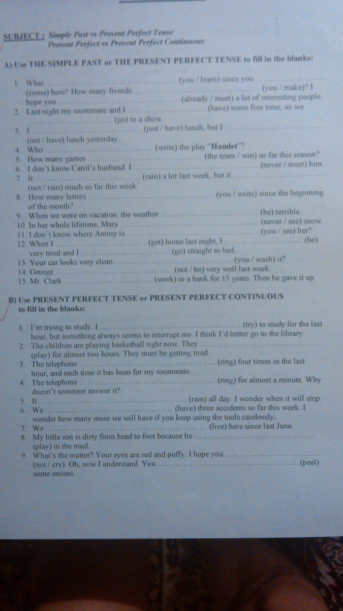 1. have you learnt, came. hsve you made. have already met