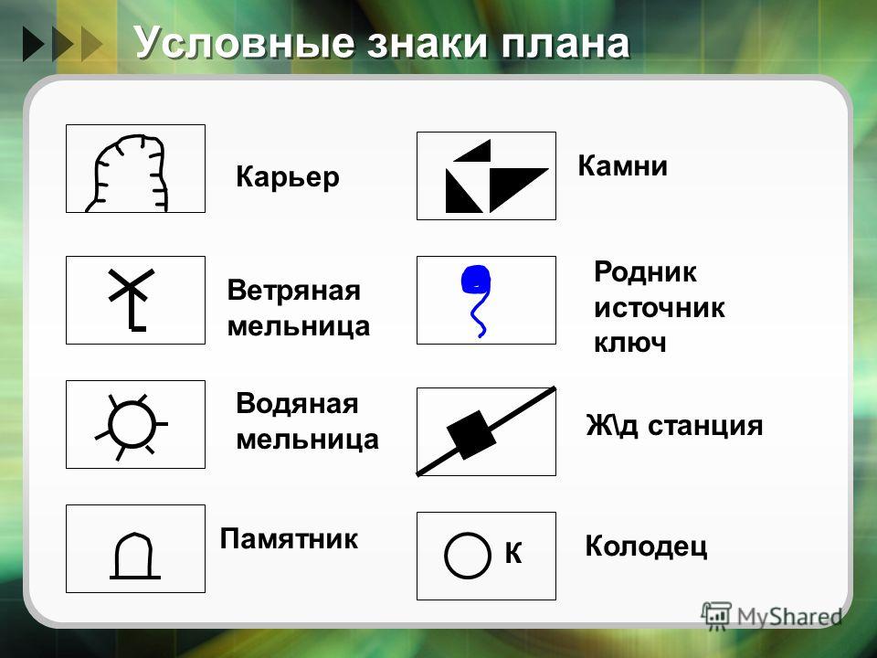 условный знак родника - обычная запятая и рядом надпись род. Надпись можно и не ставить.