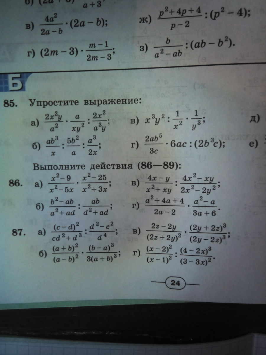 б) в²-ав ÷ ав = в(в-а) × д (д+а) = д(в-а)