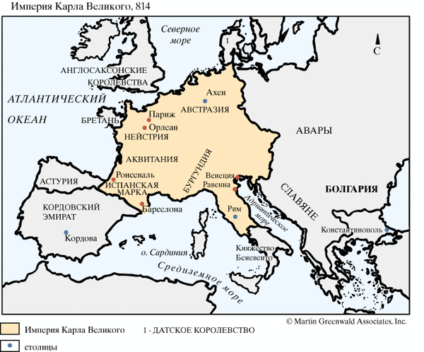 Священная Римская империя (с 1512 года — Священная Римская империя германской нации; лат. Sacrum Imperium Romanum Nationis Germanicæ или Sacrum Imperium Romanum Nationis Teutonicæ, нем. Heiliges Römisches Reich Deutscher Nation), в старинных русских источниках также царство Римское, Цезария и так далее — государственное образование, существовавшее с 962 по 1806 годы и объединявшее многие территории Европы. В период наивысшего расцвета в состав империи входили Германия, являвшаяся её ядром, северная и средняя Италия, Нидерланды, Чехия, а также некоторые регионы Франции. С 1134 года формально состояло из трёх королевств: Германии (всю территорию Нижней Германии (от Рейна до Эльбы) , Италии, Бургундии; в 70-х гг. VIII в. Карл возобновил войну с лангобардами, которую вели еще его предшественники, и захватив столицу лангобардов Павию, низложил лангобардского короля Дезидерия. Лангобардия была присоединена к Франкскому королевству и с этих пор управлялась уже франкскими графами, в конце VIII в. — в самом начале IX в. франки предпринимают еще несколько экспедиций за Пиренеи, в связи с тем, что арабская конкиста не прекращается. Эти походы были уже более удачны, чем поход 778 г. Карлу Великому удалось завоевать область на территории современной Испании, лежащую между Пиренеями и рекой Эбро. На этой территории Карл I создает Испанскую марку, которая служит пограничным форпостом для защиты Франкской империи от арабских вторжений. На территории марки позднее оформится Барселонское графство. . Карл I поставил в зависимость от франков сильное Аварское царство на среднем Дунае, при нем окончательно было завоевано Баварское королевство на Верхнем Дунае, которое ранее платило франкам дань, и то нерегулярно. . В результате завоеваний Карла Великого и его паладинов границы Франкского государства стали необозримы. На западе владения Карла I начинались от Пиренеев, Атлантического океана, а на востоке заканчивались Дунаем и Адриатическим морем. Северная граница проходила по побережьям Немецкого, Северного и Балтийского морей, на юге империя простиралась до Южной Италии.