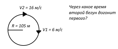 t=S/V2-V1=0,5*3,14*105/16-6=16,5 c