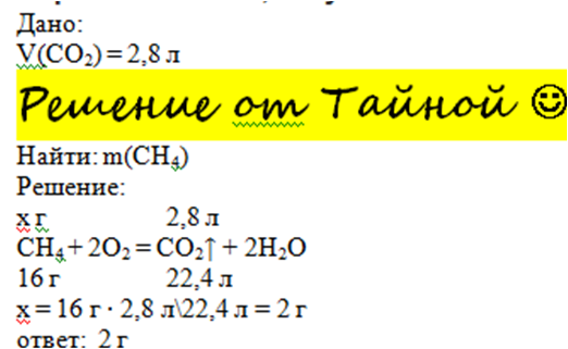 найдите, какая масса метана была сожжена , если в результате образовалось 2,8 л углекислого газа.
