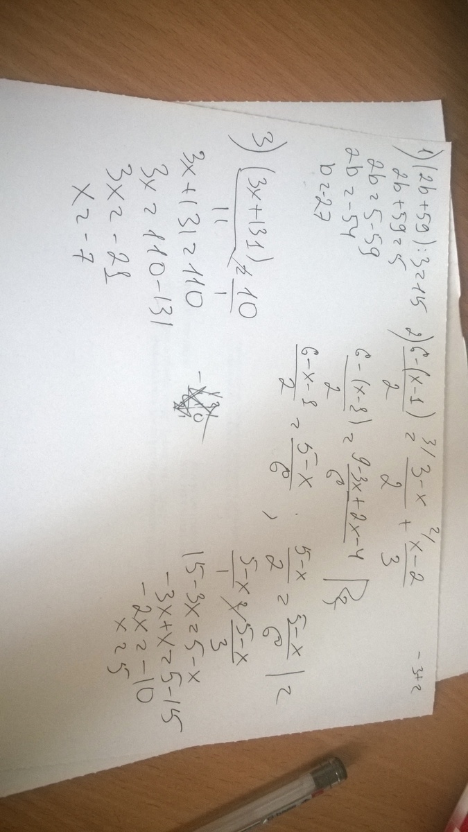 6- (х-1) : 2 = (3-х) : 2 + (х-2) : 3