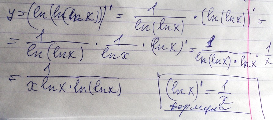 используя формулу дифференцирования сложной функции и формулу производная натурального логарифма, получаем....