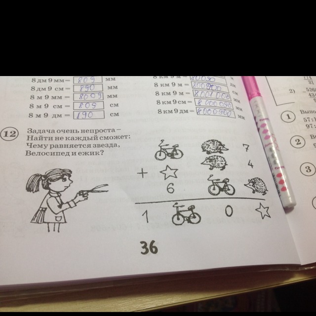 Надо узнать чем равняется звезда велосипед и ёжик номер 12
