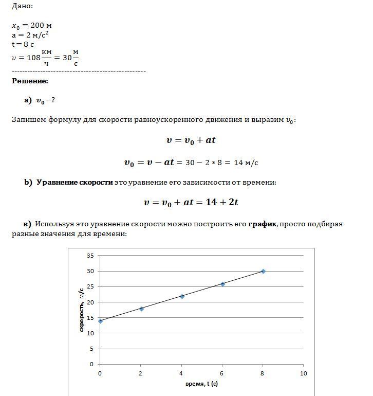 Тело движется из точки с координатой х0= 200м и ускорением 2м/сv2. Через 8 с после начала движения скорость тела стала равной 108 км/ч.
