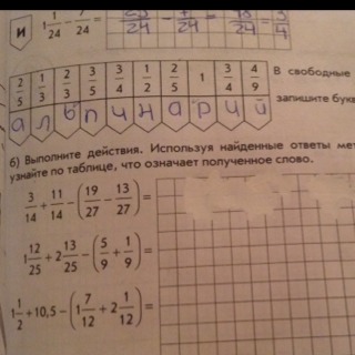 Выполните действия.Используя найденные ответы методом исключений узнайте по таблице,что означает слово "альпинарий".