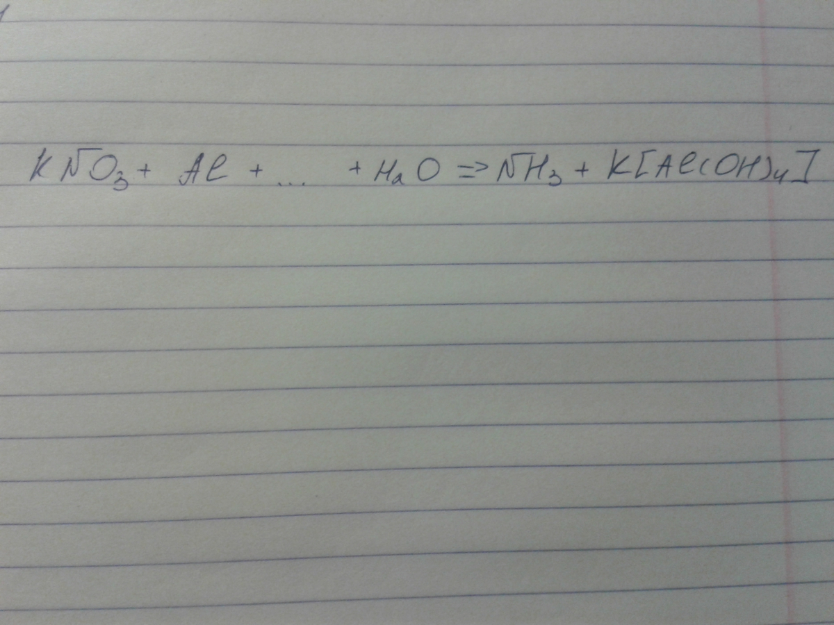KNO3 + Al + KOH + H2O → NH3 +K[Al(OH)4]