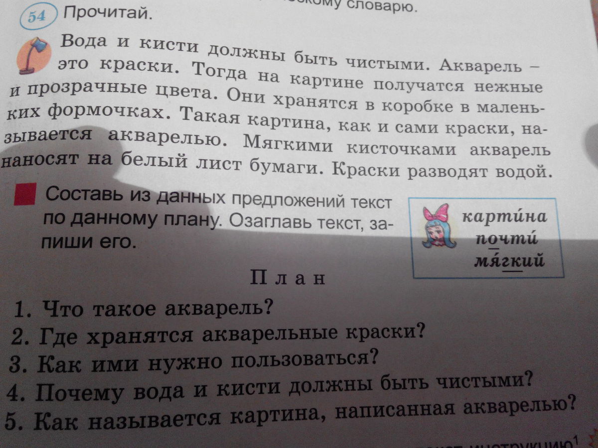 составить из данных предложений текст по данному плану. Озаглавить текст, и записать его.