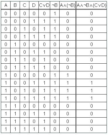 2. Построить таблицу A ^ B(с знаком вектора - инверсия) ^ (C v D)