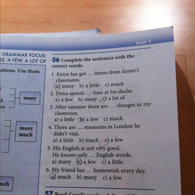 5. Он не очень хорош в английиском. Он знает мало английских слов.