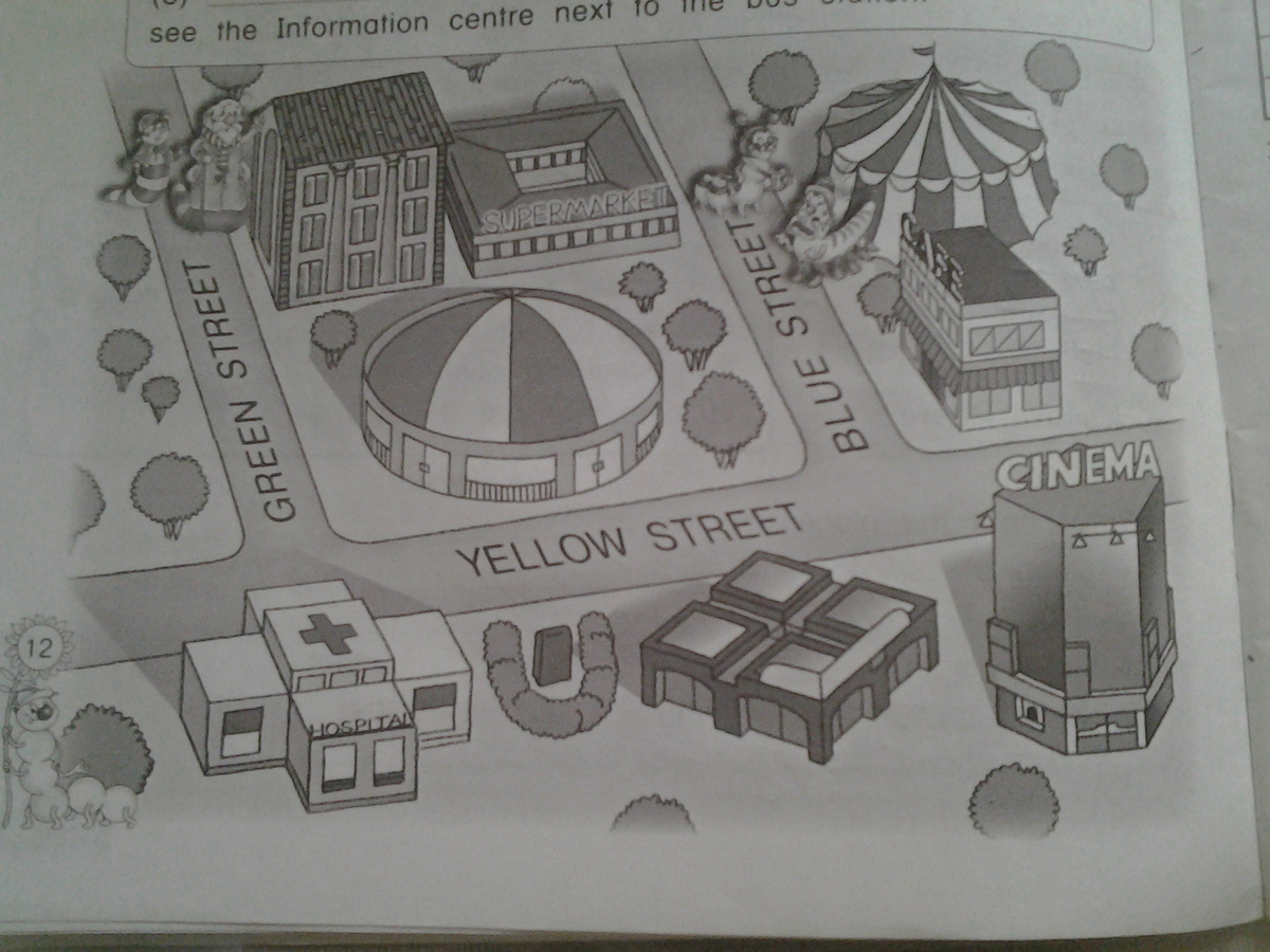 It's in ______. _______ Blue Street. _______ at the swimming pool and ______ see the Information centre next to the bus station.