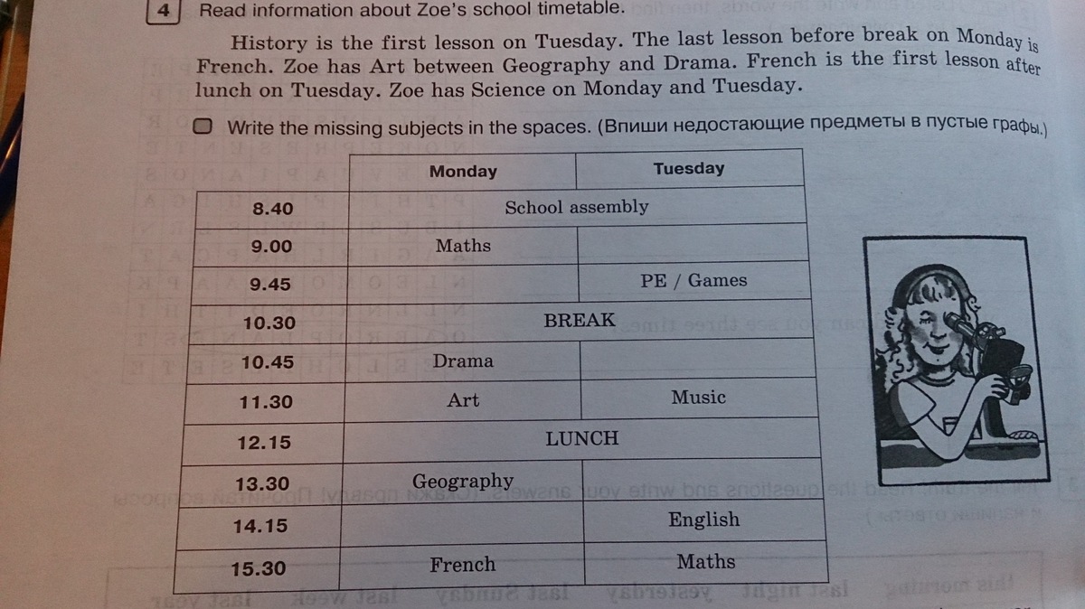 Пустые места по порядку (начиная со вторника и слева на право)