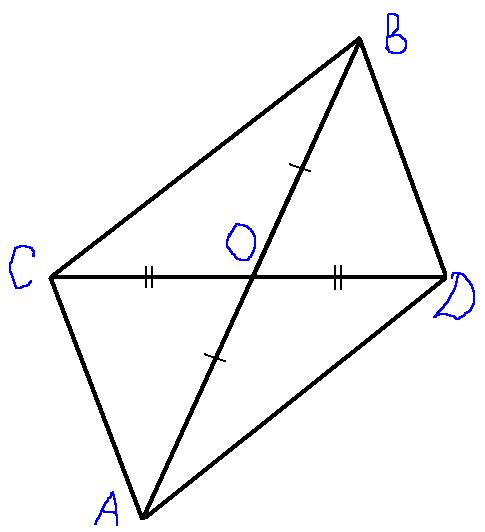 отрезок АВ и СD пересекаются в точке О так, что АО = ВО и СО = DO.Докажите, что АВСД-параллелограмм.