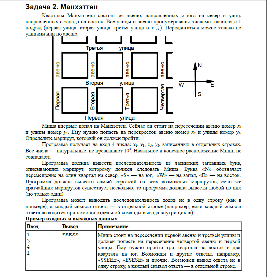 Введите через пробел конечные номера улицы и авеню: 4 1
