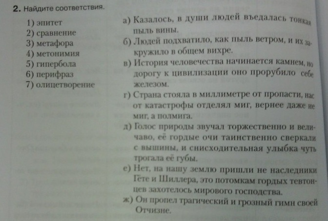 1. метонимия, 2. метафора, эпитет, 3 эпитет, развернутое сравнение 4 гипербола метафора 5) сравнение