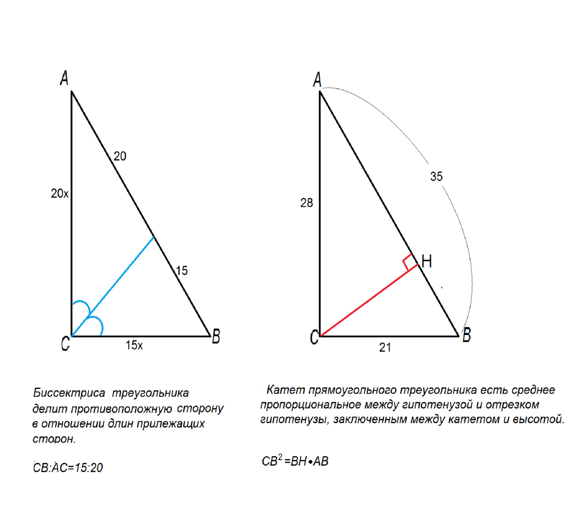 Биссектриса треугольника делит сторону на отрезки, пропорциональные прилежащим сторонам. (рис.1 вложения)