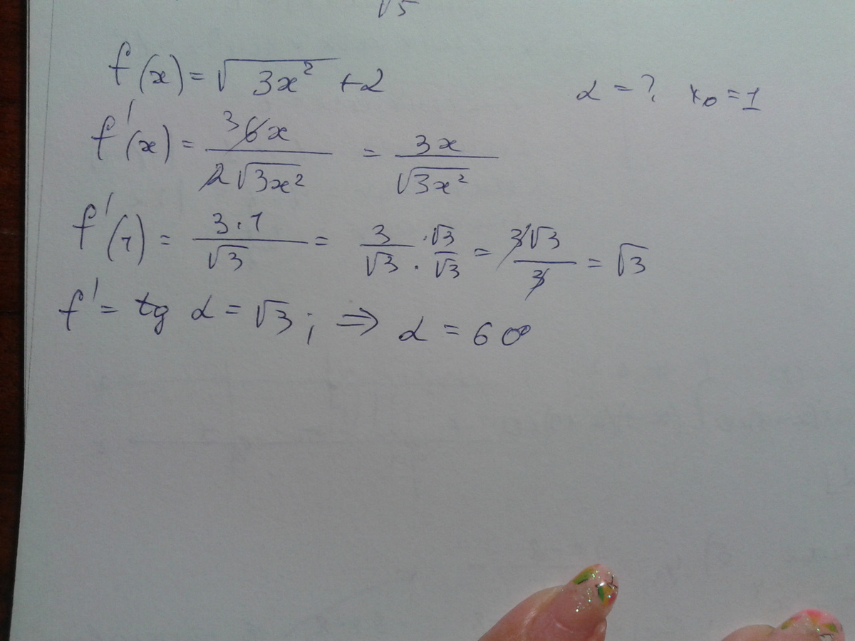 Знайдіть гострий кут, який утворює з віссю ординат дотична до графіка функції g(x) в точці x0, якщо f(x) = корінь з x^2+2, x0 =1