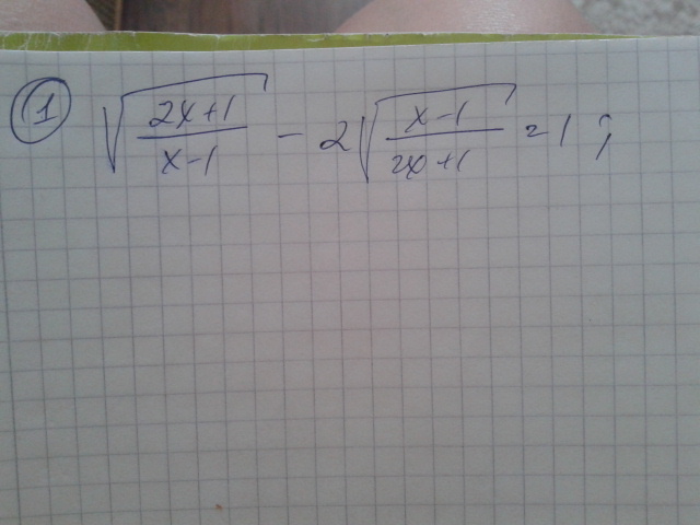 sqrt{frac{2x+1}{x-1}}-2sqrt{frac{x-1}{2x+1}}=1,; ; OOF:; xne 1,; xne -frac{1}{2}\\t=sqrt{frac{2x+1}{x-1}} geq 0,; ; t-2cdot frac{1}{t}-1=0,; ; t^2-t-2=0,\\ t_1=-1<0; (ne; podxodit),t_2=2; (teor.; Vieta)\\sqrt{frac{2x+1}{x-1}}=2\\frac{2x+1}{x-1}=4\\2x+1=4x-4\\2x=5\\x=frac{5}{2}