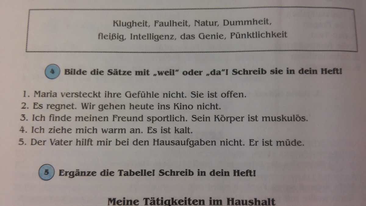 5.Mein Vater hilft mir bei den Hausaufgaben nicht,weil er müde ist.