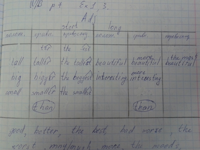 как определить где какая степень у прилагательных? или это смотря какое оно: длинное(long) или ороткое(stort)???