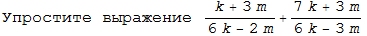 frac{k+3m}{6k-2m}+frac{7k+3m}{6k-3m}=frac{k+3m}{2(3k-m)}+frac{7k+3m}{3(2k-m)}= \ =frac{3(2k-m)(k+3m)+2(3k-m)(7k+3m)}{6(3k-m)(2k-m)}=frac{48k^2+19km-15m^2}{6(3k-m)(2k-m)}