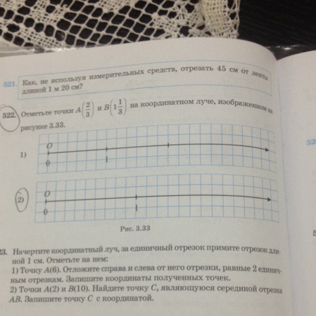 А(2/3) = 9 : 3 * 2 = 6 клетка, т.е. А надо отметить на 6 клетке