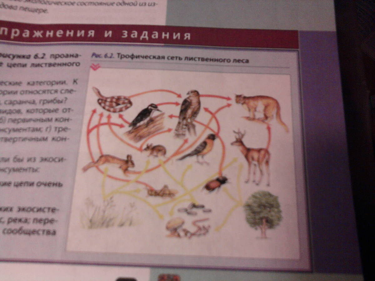 На основе данных из рисунка 6.2 проанализируйте трофические цепи лиственного леса:1.Перечислите ее трофические категории.К какой трофической категории относятся следующие виды:заяц,черви,саранча,грибы?