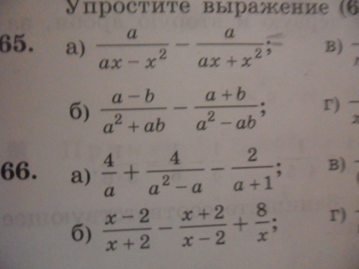 Упростите выражение!Помогите пожалуйста упростить эти четыре примера,заранее спасибо!!