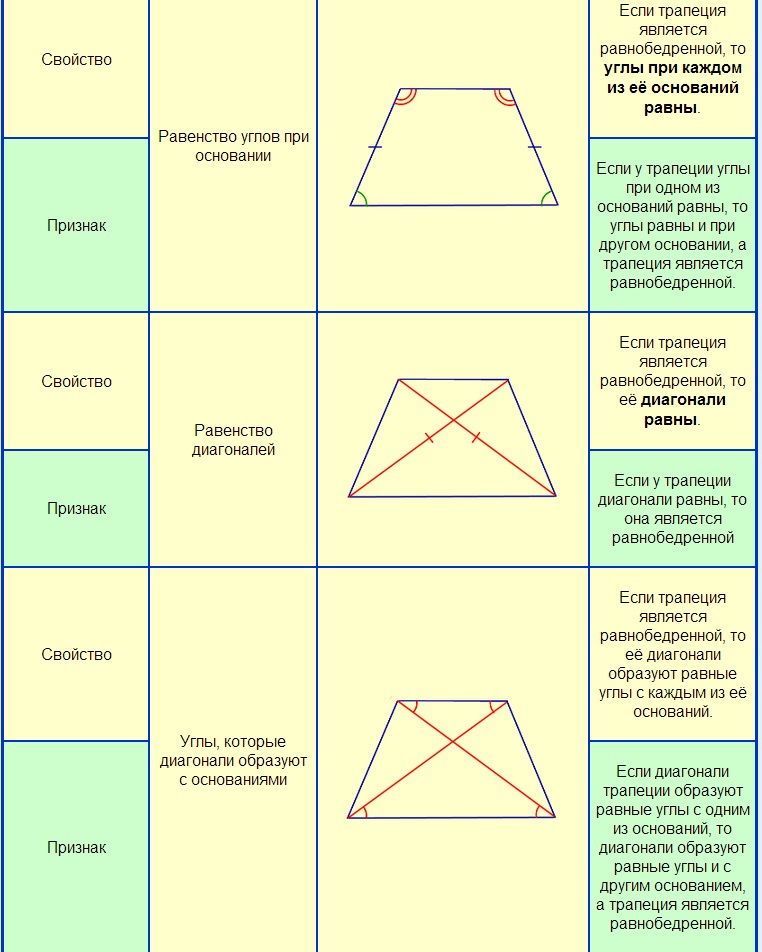 Углы при основаниях в равнобедренной трапеции равны, диагонали тоже равны
