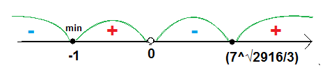 Проходя через точку минимума, производная функции меняет знак с - на +.