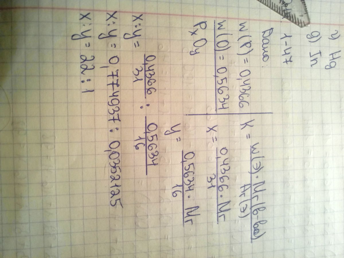 n(P) : n(O) = 1,4 : 3,52 = 1 : 2,5 = 2 : 5