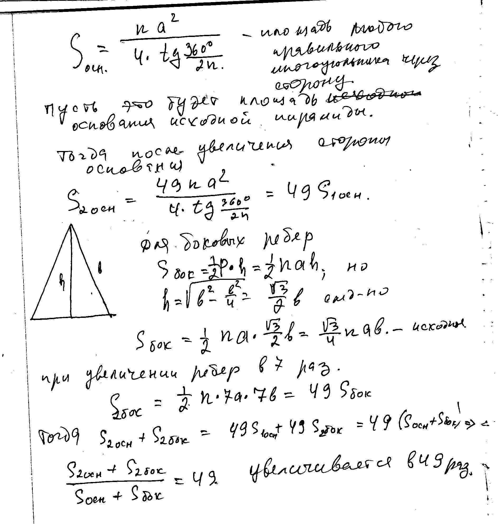 Во сколько раз увеличиваться площадь поверхности правильной пирамиды,если все её ребра увеличить в 7 раз?