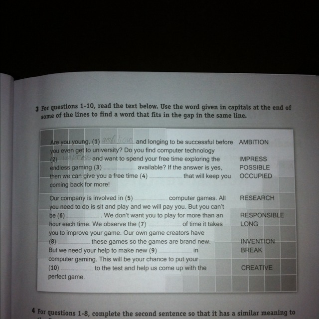 Ambitious, impressive, possibilities, occupation, researching, irresponsible, length, invented, breaks, creativity.