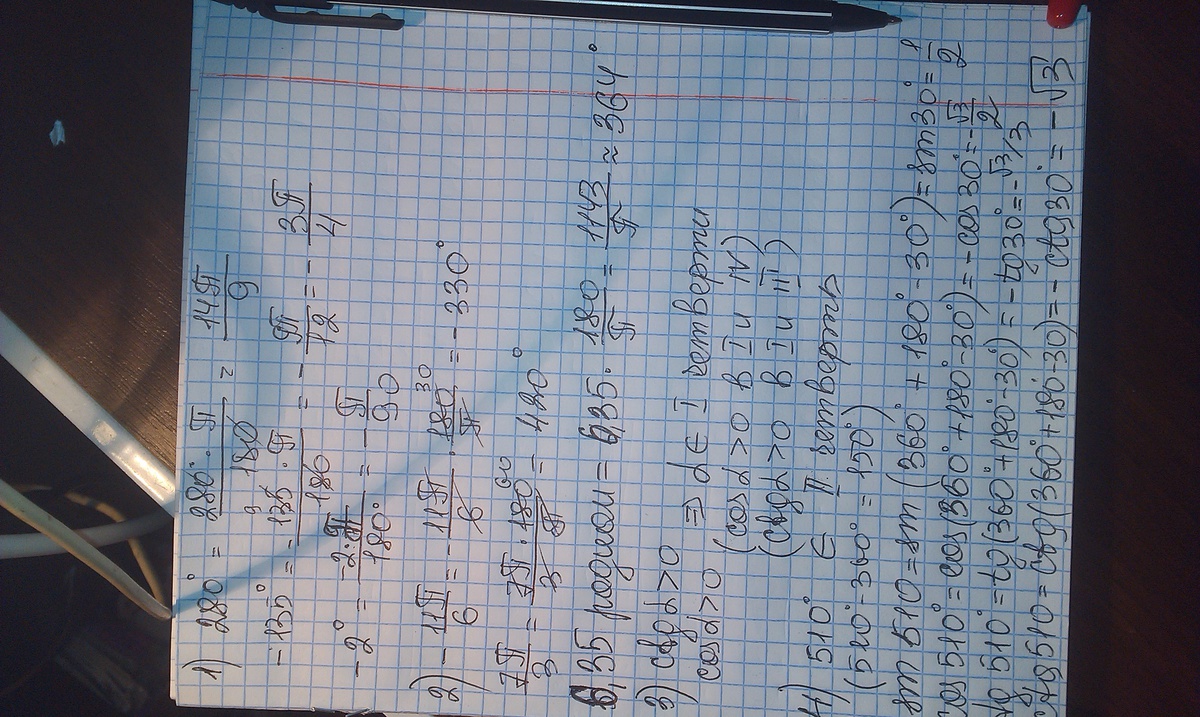 1. Выразите в радианной мере величины углов: а)280градусов. б)-135градусов. в)-2градуса.