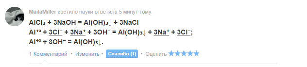 AlCl₃ + 3NaOH = Al(OH)₃↓ + 3NaCl