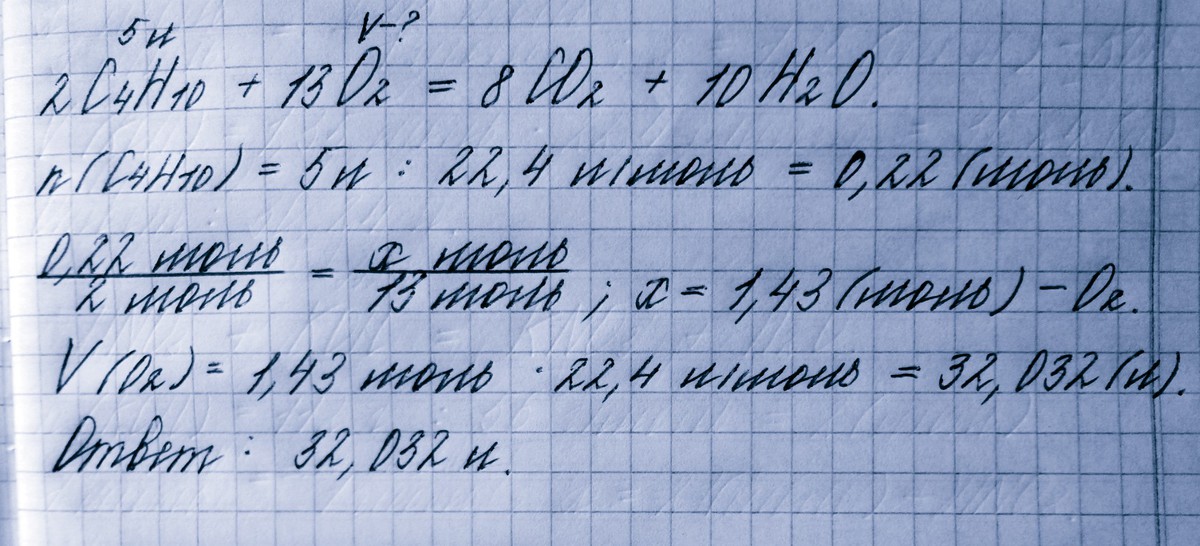 ню(С4Н10)= 5/22.4 = 0.22 моль