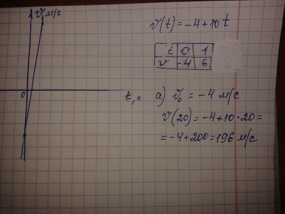 Найдите: а) начальную скорость тела и скорость тела через 20с после начала движения