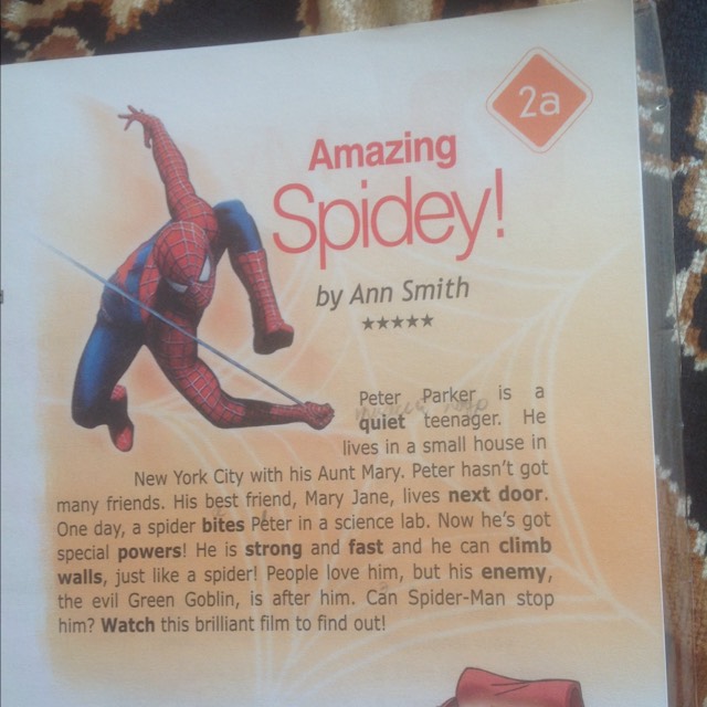 Питер Паркер ис э квайт тинэйджер. Хи ливс ин э смолл хаус ин Нью Йорк Сити виф хис аунт Мэй. Питер хэснт гот мэни френдс. Хис бэст френд, Мэри Джейн, ливс нэкст дор. Ван дэй, э спайдер байтс Питер ин а сайенс лэб. Нау хис гот спешл пауерс! Хи ис стронг энд фэст энд хи кэн клаймб воллс, джаст лайк э спайдер! Пипл лав хим, бат хис энэми, зэ ивэл Грин Гоблин, ис афтер хим. Кэн Спайдер-мэн стоп хим? Вотч тис бриллиант филм ту файнд аут.