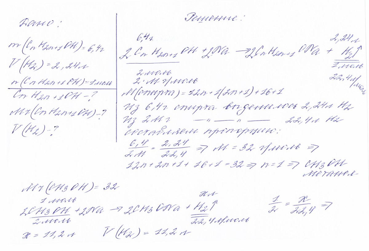 При взаимодействии 6,4 г предельного одноатомного спирта с натрием выделилось 2,24 л