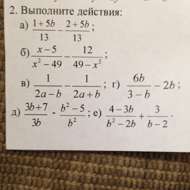 е)=(4-3b)/b(b-2)+3/(b-2)=(4-3b+3b)/b(b-2)=4/(b²-2b)