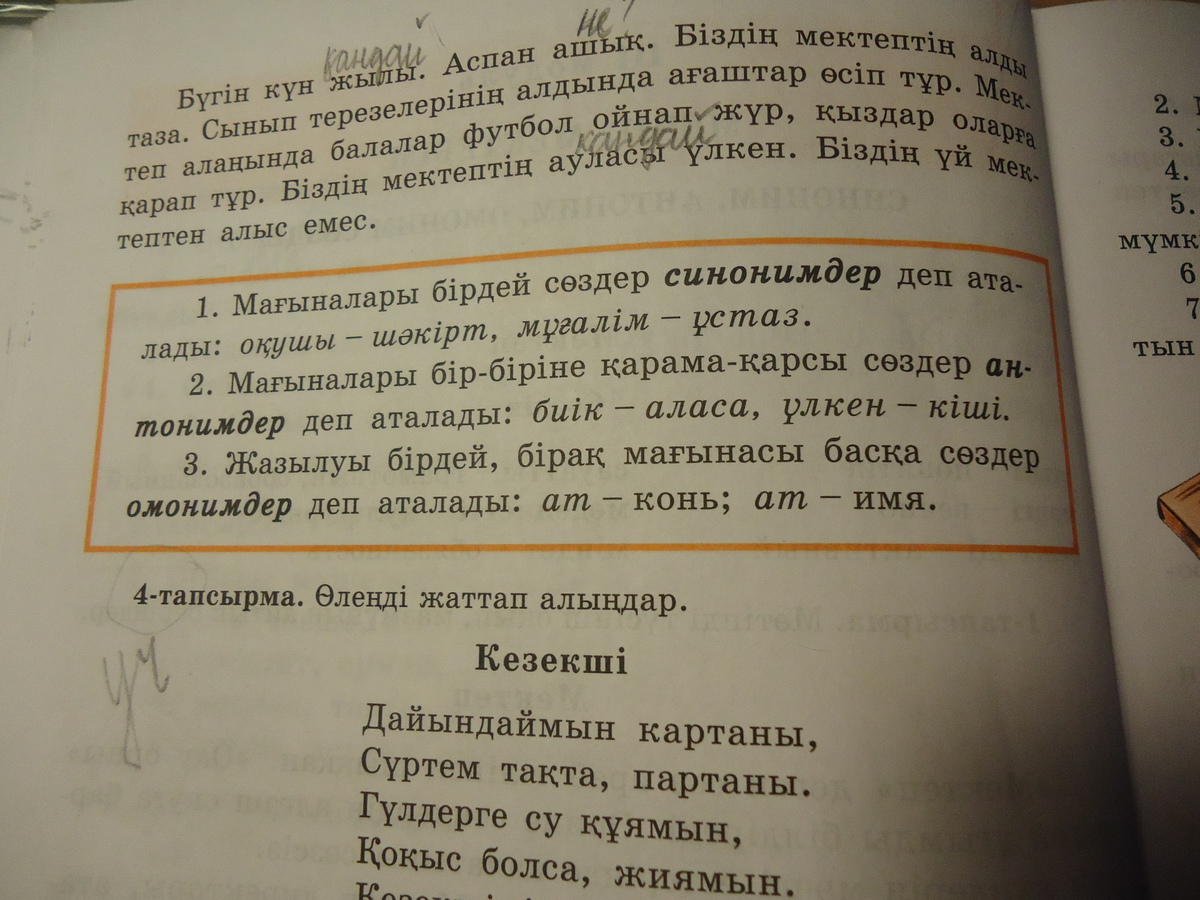 Всем привет!Помогите пожалуйста написать 5 синонимов,5 антонимов и 5 омонимов на казахском языке!Как показано в красной таблице!Заранее Всем Спасибо!