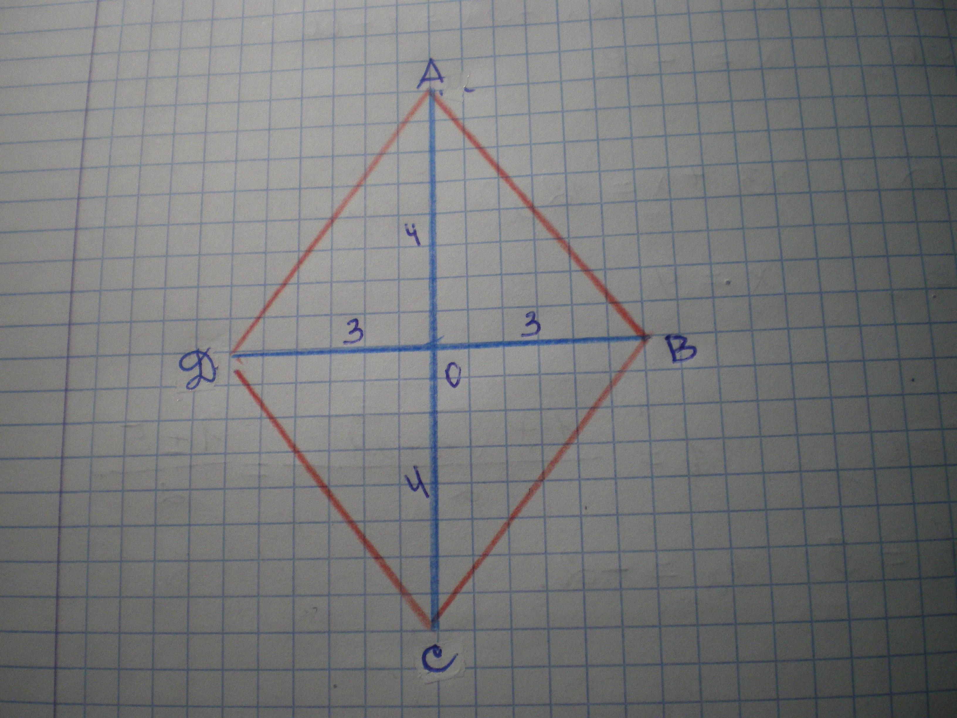 диагонали четырехугольника ABCD, пересекаются под прямым углом,делятся пополам. Длины диагоналей равны 6 см и 8 см. Как вычислить площадь четырехугольника АВСD