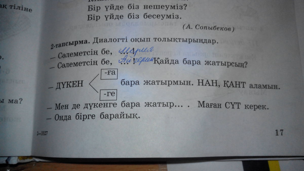 1)дүкенГЕ,2)баражатырМЫН, 3)вспять свой имя, 4)анам,əзірлеу және мен, 5) үйГЕ, 6)его (еë) имя ,7)улица где ты жевëшь