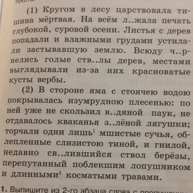В стороне находилась яма,которая уже давно покрылась плесенью:по ней скользил водяной паук,не слышалось кваканье лягушки:торчали только сучья гнилой березы .