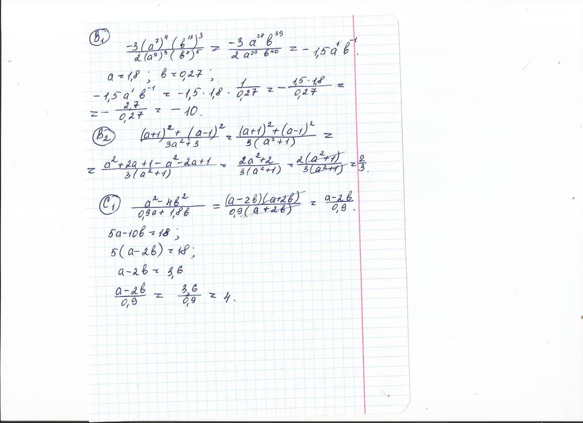 В1) -3(а7)4*(в13)3/2(а9)3*(в8)5=-3*а28*в39/2*а27*в40=-3*а/2*в=-3*1,8/2*0,27=
