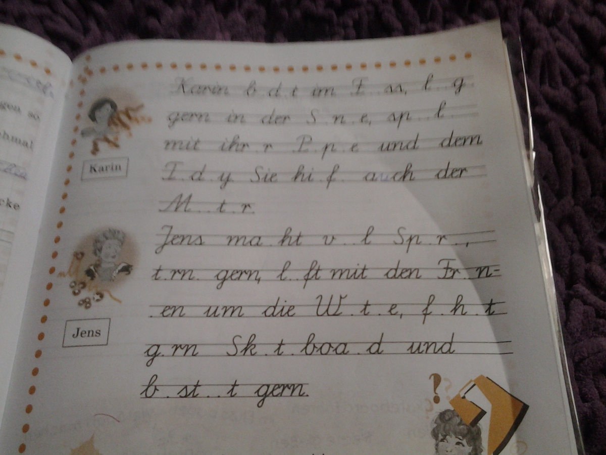 Jens macht viel Sport,turnt gern,läuft mit den Freunden um die Wette,fährt gern Skateboard und bastelt gern.